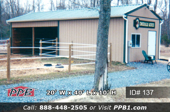This is an agricultural pole barn we built in the past. For construction costs, please contact the sales department. Below is a breakdown of information on building 137. Contact us for more details and a free quote on your pole barn.