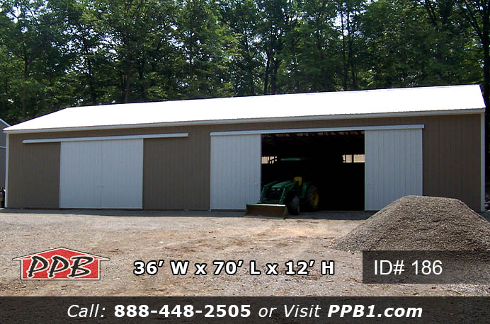 This is an agricultural pole barn we built in the past. For construction costs, please contact the sales department. Below is a breakdown of information on building 186. Contact us for more details and a free quote on your pole barn.