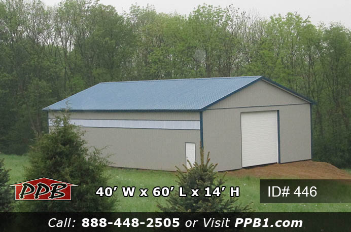 This is an agricultural pole barn we built in the past. For construction costs, please contact the sales department. Below is a breakdown of information on building 446. Contact us for more details and a free quote on your pole barn.